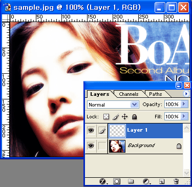 2. 다운받은 샘플이미지를 포샵에서 오픈한뒤 레이어파레트의 레이어생성 버튼을 클릭해서