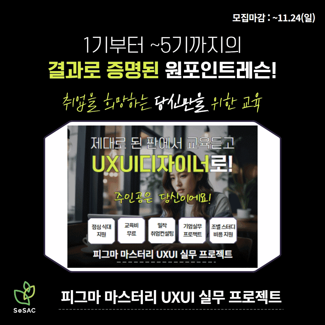 [교육생 만족도 100%] 청년취업학교 SeSAC 마포캠퍼스_6기_<피그마 마스터리 UXUI 실무 프로젝트>(~11/24)