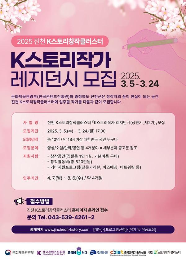 - 접수처: 진천 K스토리창작클러스터 홈페이지 온라인 접수