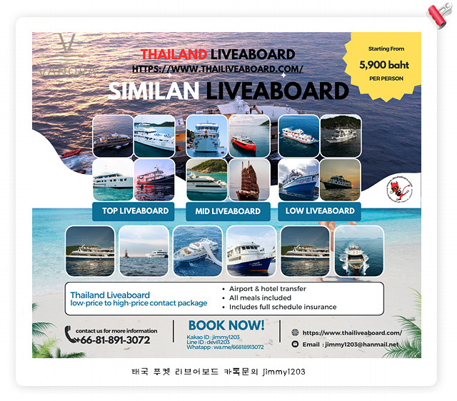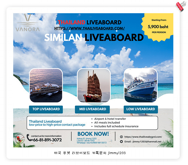 태국의 모든 리브어보드를 단 한 번의 문의로 해결하세요