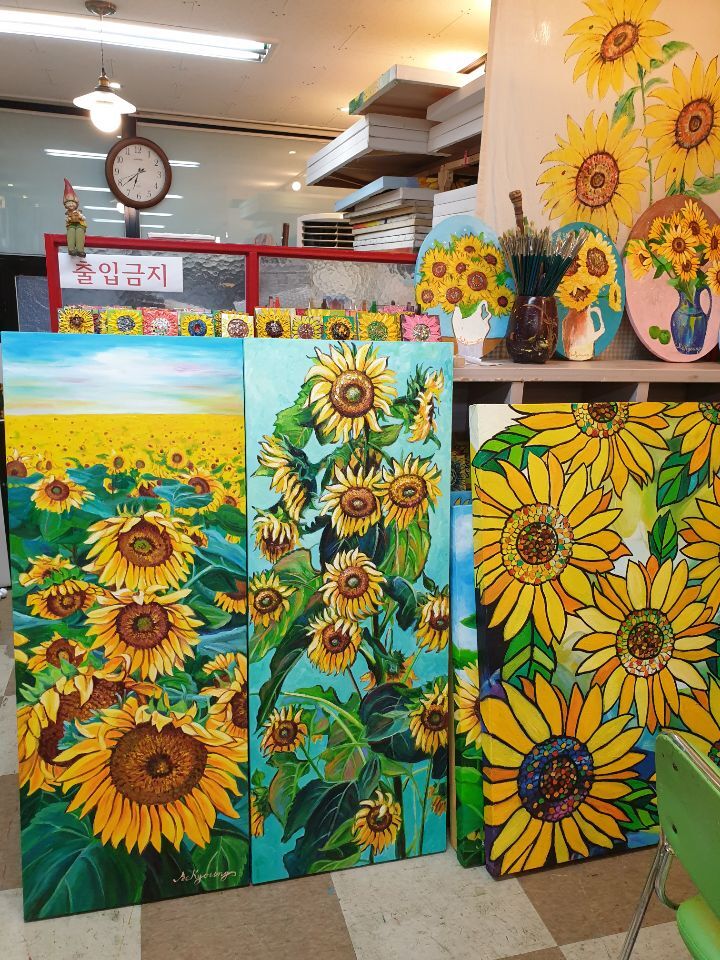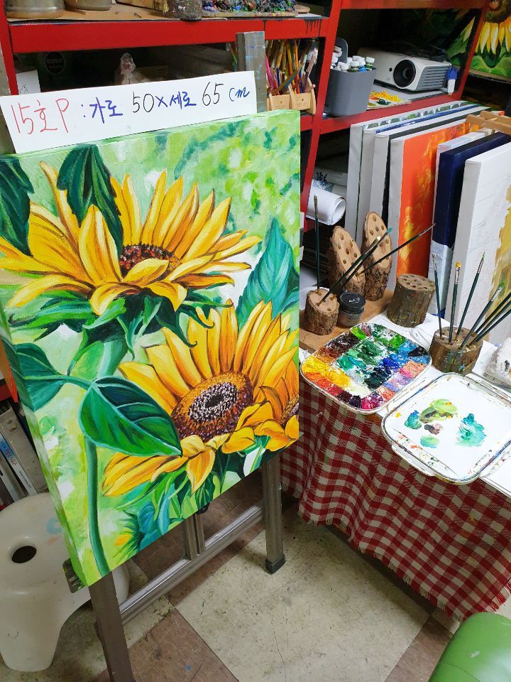 부산시 해운대구 좌동로63번길 롯데캐슬 마스터2차 상가 209호 해운대화실 해바라기 꽃 유화그림들도