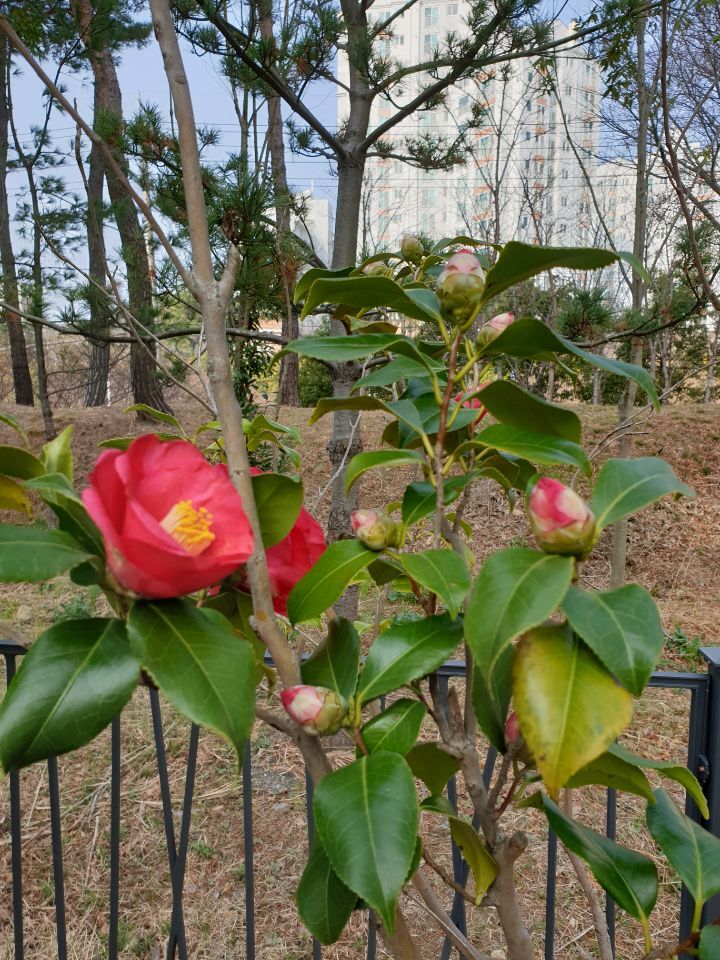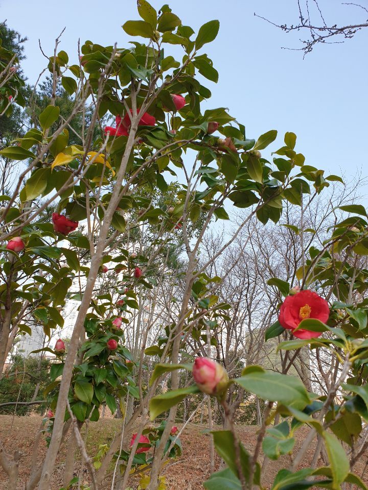 빨강 동백꽃들도 붉은 자태와 그 나무아래에 낙화들도 예술작품으로 만들어져 있었답니다.