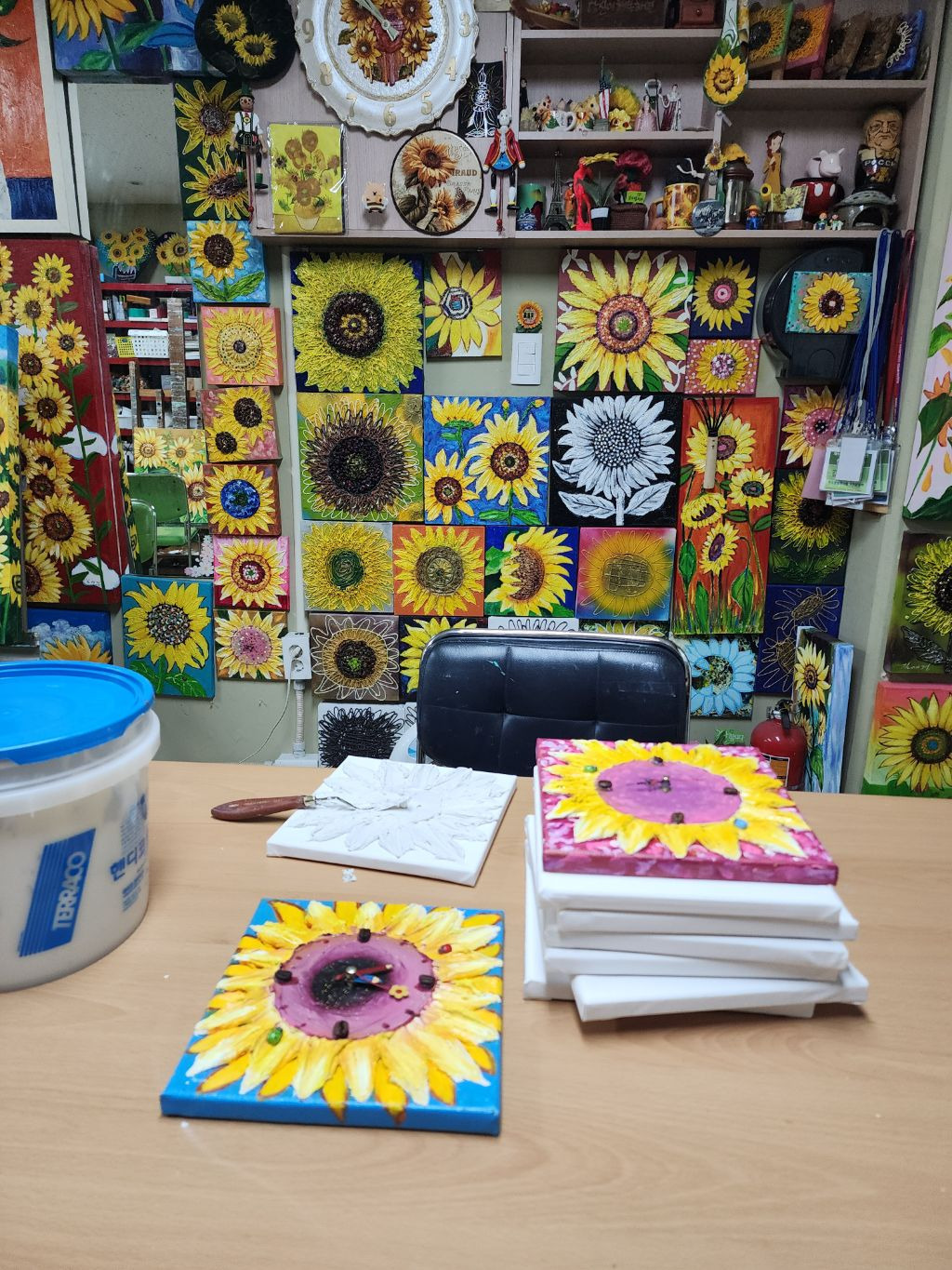 3호 캔버스에 (20x20cm)핸드코드로 입체감 있게 해바라기 꽃 🌻 소품 만들기