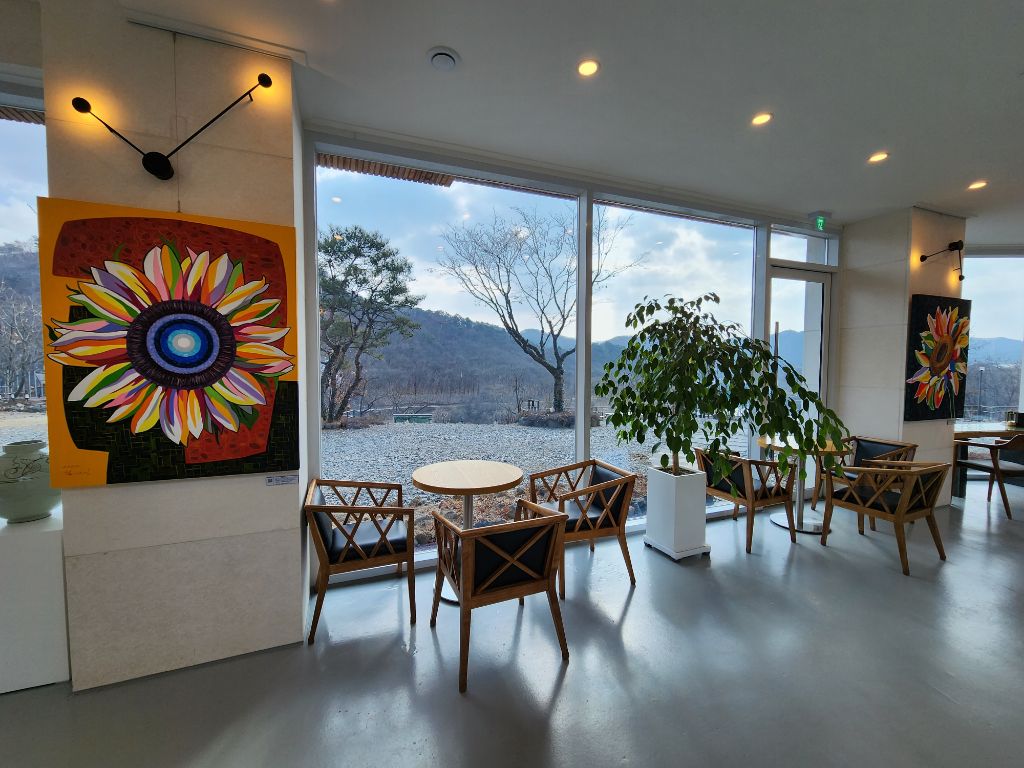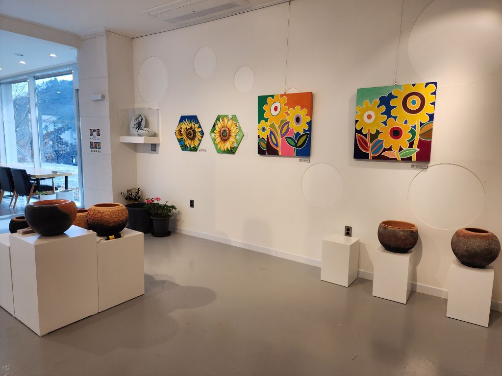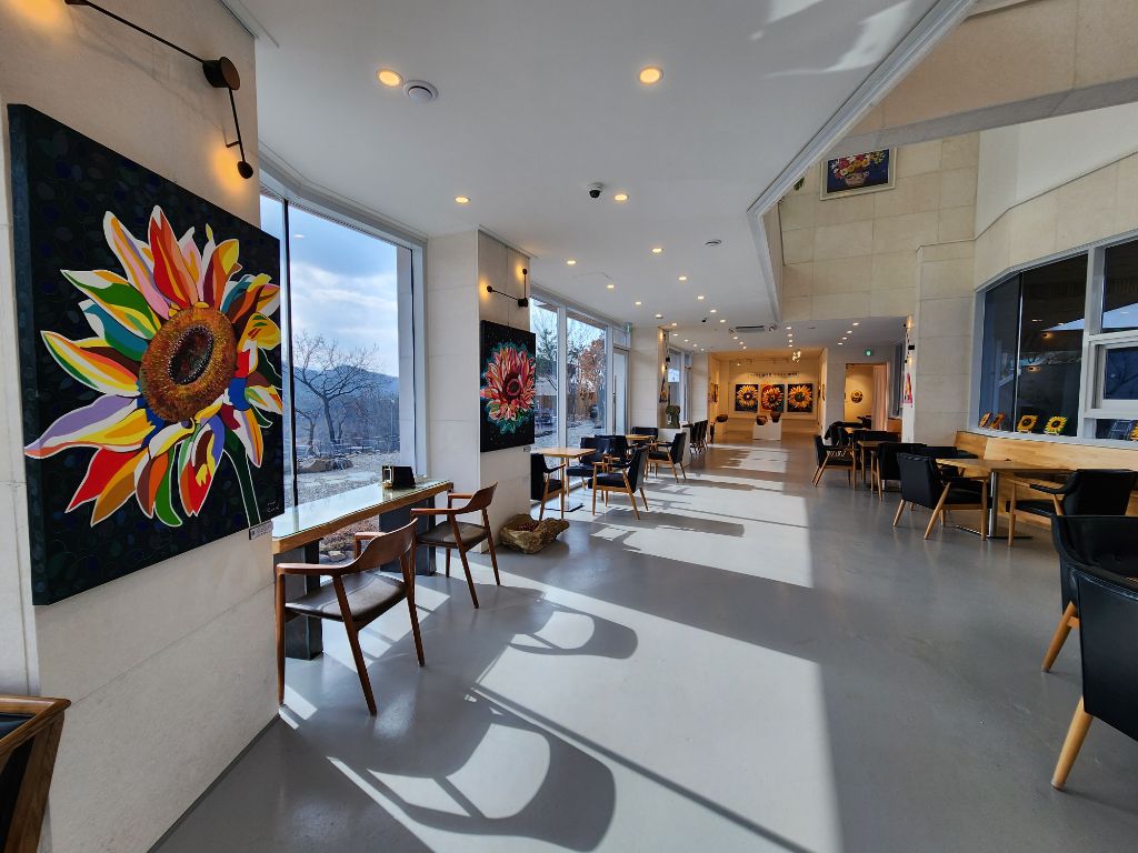 여기는 경기도 연천 연우갤러리카페에서 해바라기 꽃 서양화가김애경 개인전 21회를 오늘부터~3.31일까지 열립니다.