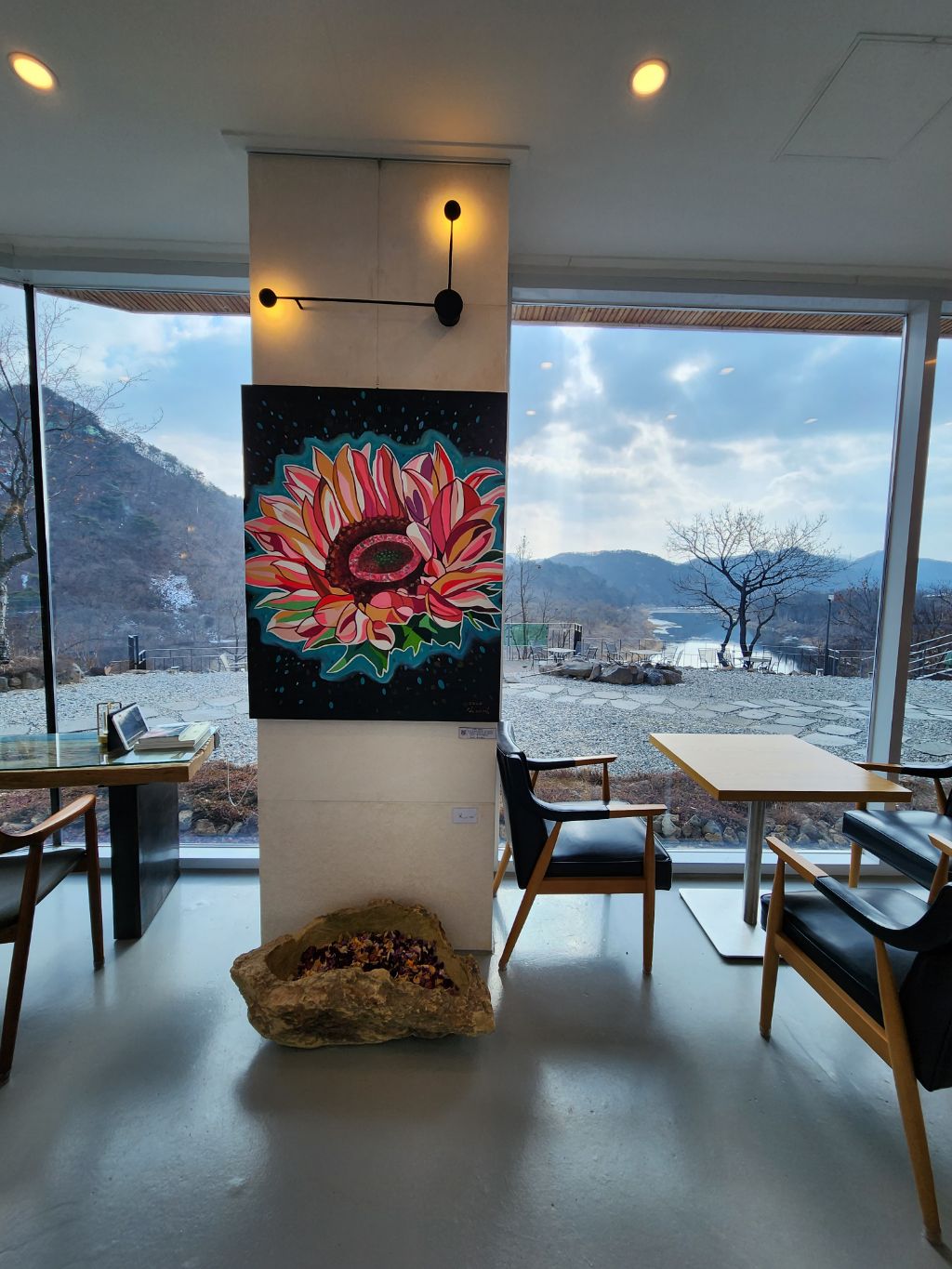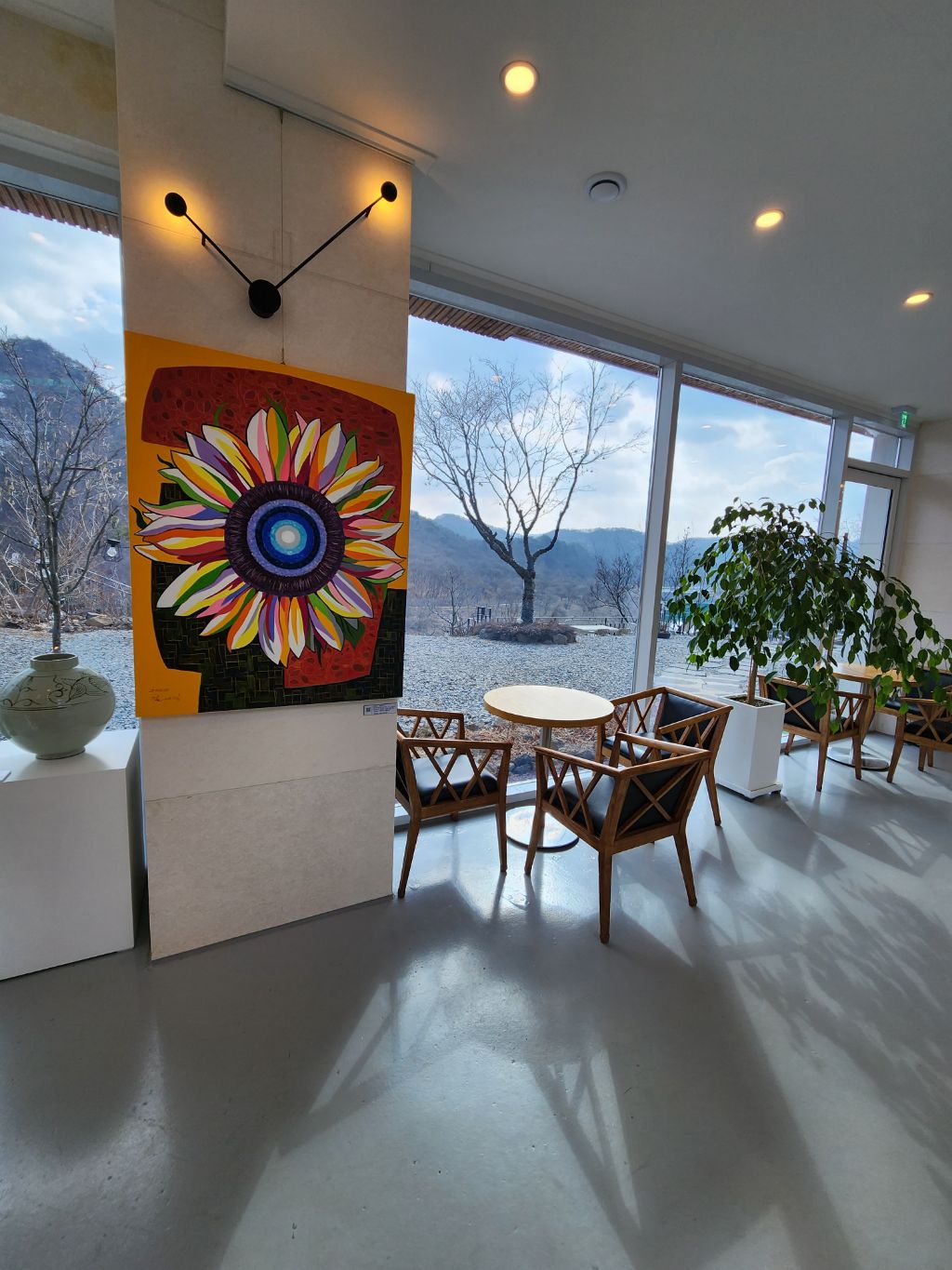 오늘 경기도 연천 연우갤러리카페에 해바라기 꽃 그림전시를 위해 디피하려 왔답니다.