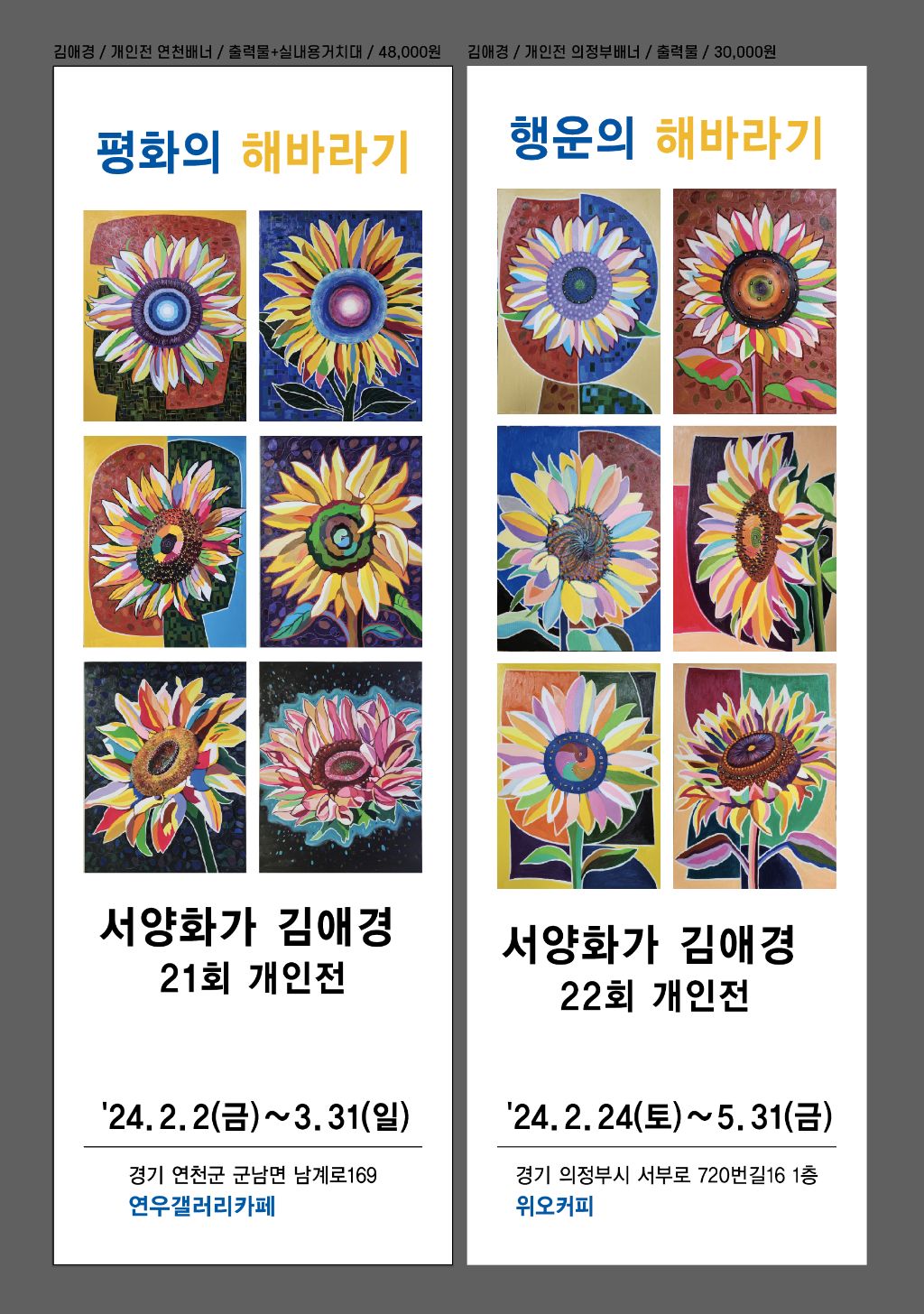 "평화의 해바라기" 경기도 연우갤러리카페 24.2.2~3.31일까지 서양화가김애경의 21회 개인전이 열립니다.
