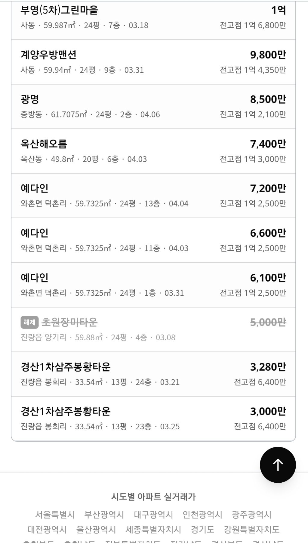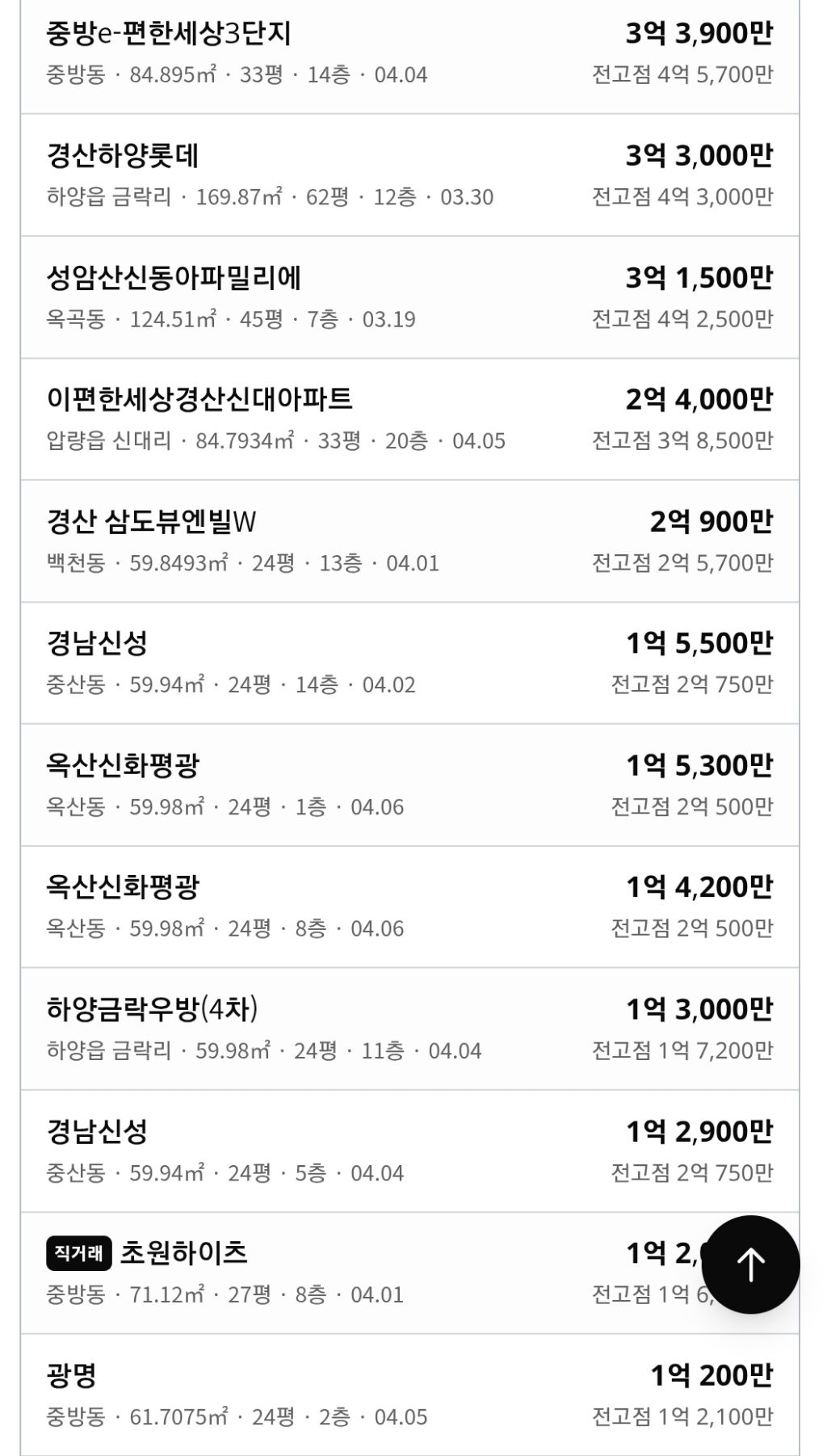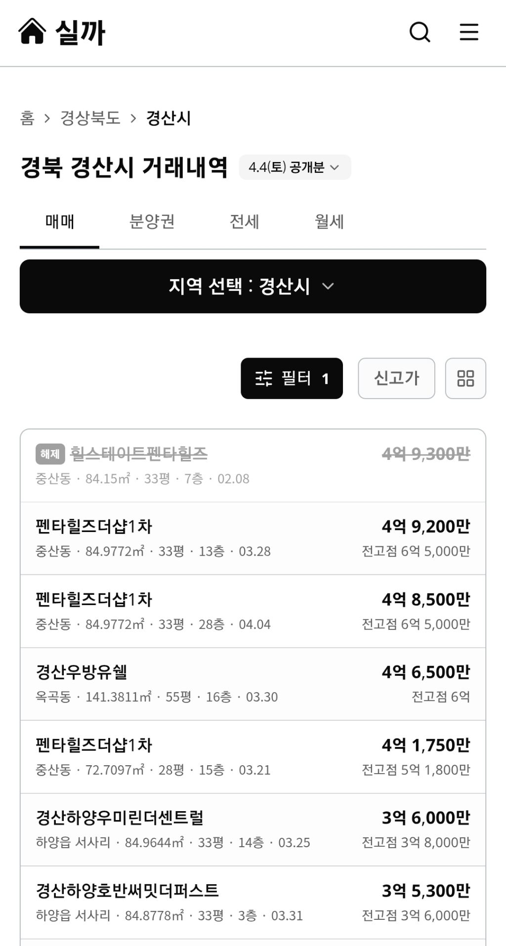 [경산]04.07 경산 실거래가 작성자귀어|작성시간26.04.07|조회수1,661 목록 댓글 4 글자크기 작게가 글자크기 크게가 출처 https://silgga.com/region/47290 다음검색 현재 게시글 추가 기능 열기 북마크 공유하기 신고 센터로 신고 댓글 댓글 4 댓글쓰기 답글쓰기 댓글 리스트 작성자토니 | 작성시간 26.04.07 감사히 잘보았습니다~~ 작성자gkgkgk14 | 작성시간 26.04.07 감사합니다~^^ 작성자니와진 | 작성시간 26.04.07 가격이 야금야금 올라가네요하반기쯤이면 상승장 압력이 더 커지지 싶네요 작성자호야888 | 작성시간 26.04.10 더샵1차도 곧5억보겠네요 커뮤니티,조경이 좋킨하죠 전반적으로 가격을 찾아가네요 물가가 높으니돈가치가떨어지네요 물량도 부족 댓글 전체보기