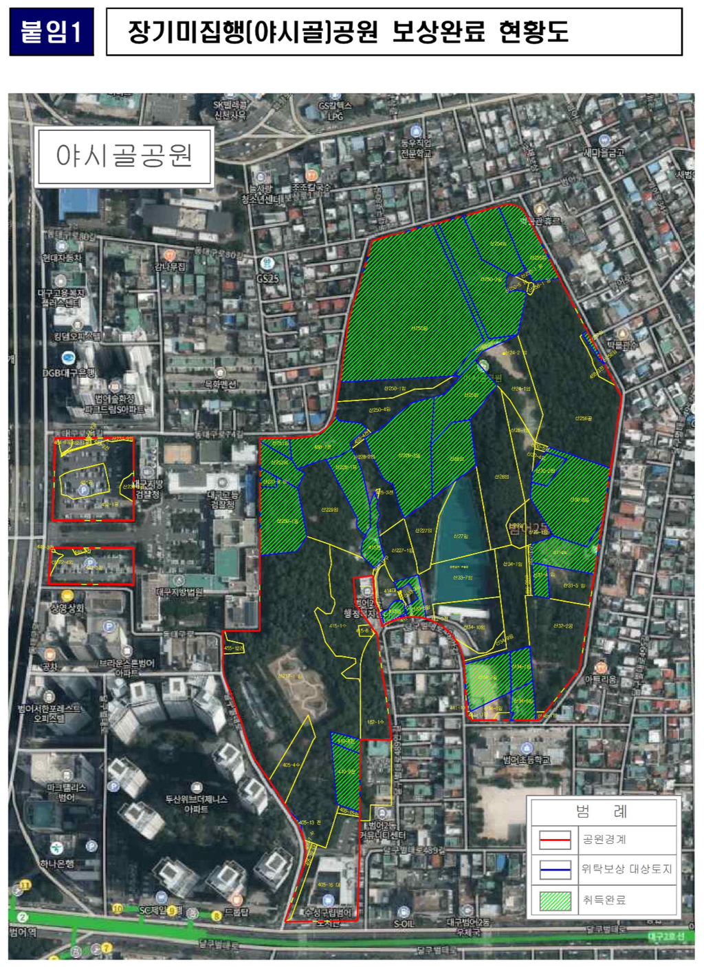 야시골공원은 개별 토지보상도 완료되었습니다.