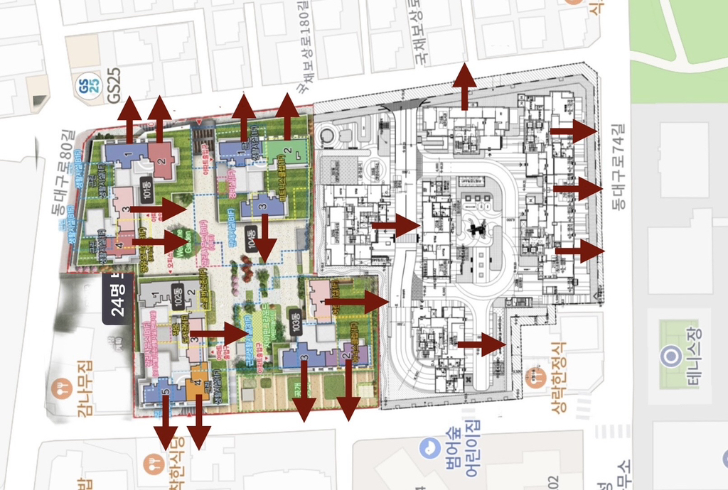 포스코,자이,동화 세 곳은 크게 간섭없는 배치도입니다