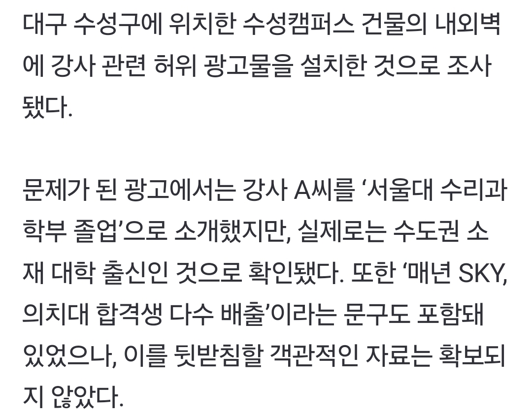 작성시간 25.06.30 저도 이런 소문 많이 들었어요. 대구 하위권 대학 나와서 서울 유명대학 어떤 코스 나와놓고 거기 졸업했다는 것 처럼 광고해서 영재아이들 가르친다고 하던데.. 소문이지만 학력 허위 정말 많을 것 같아요
