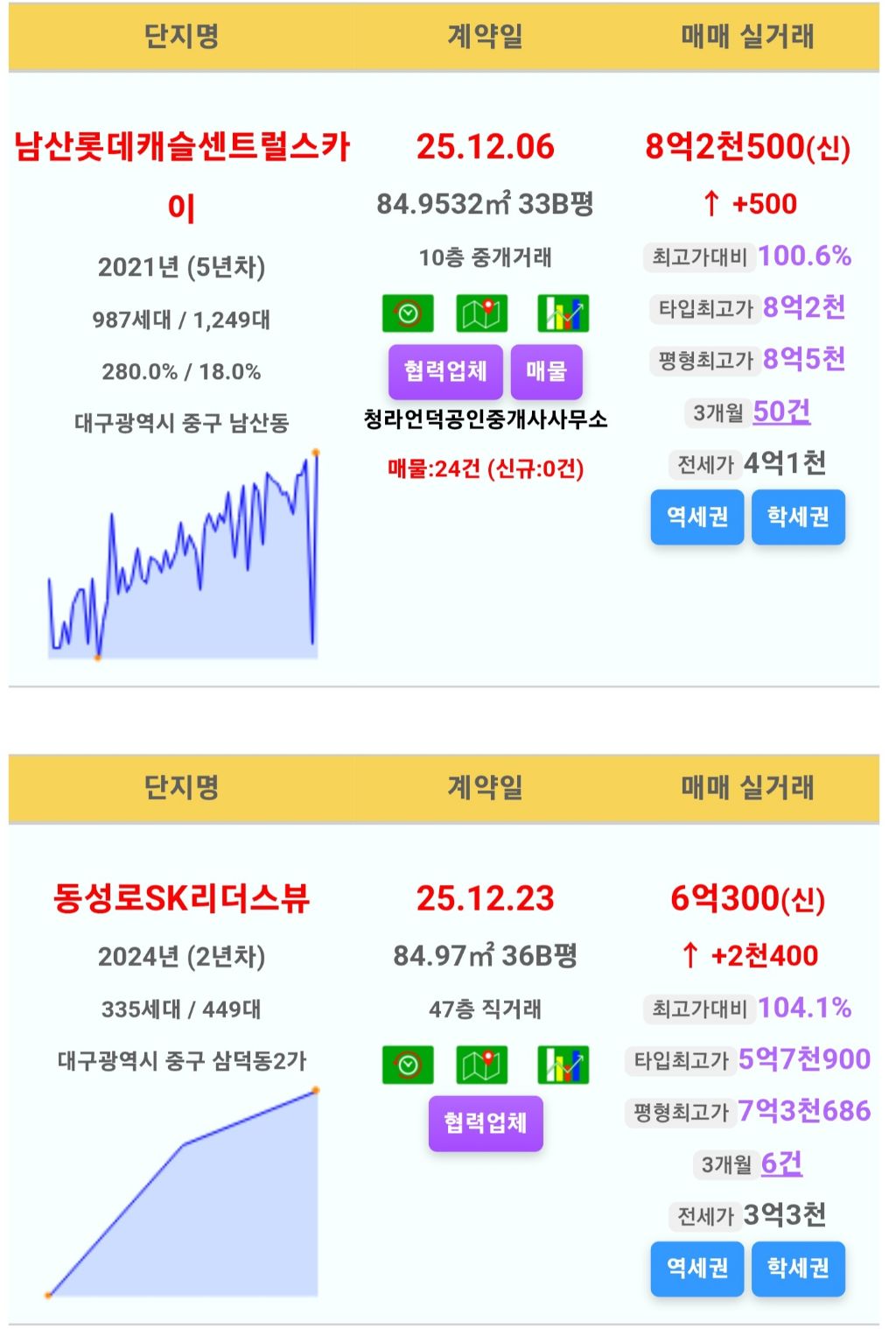 *신고가 2건[남산롯데캐슬센트럴스카이,동성로SK리더스뷰]