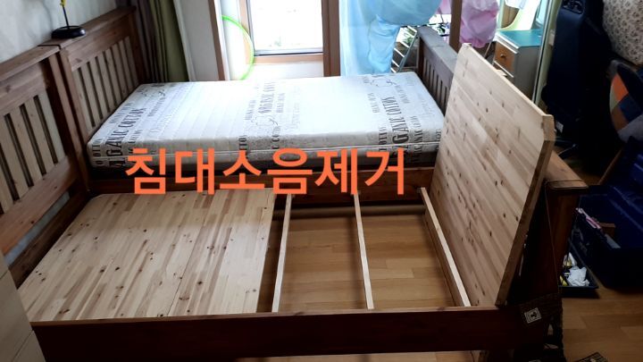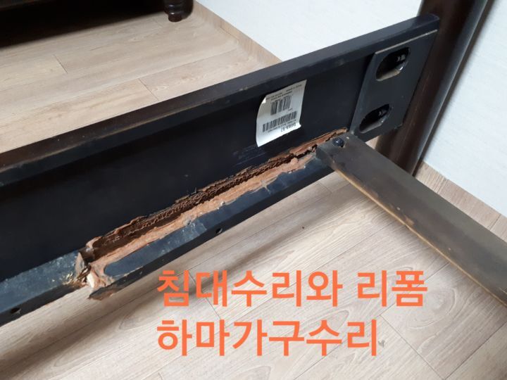 침대옆판이 벌어지고 내려앉은 침대를 출장수리 합니다.