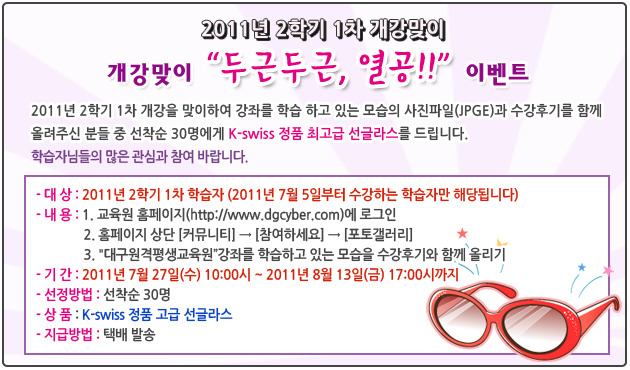- 대 상 : 2011년 2학기 1차 학습자 (2011년 7월 5일부터 수강하는 학습자만 해당됩니다)