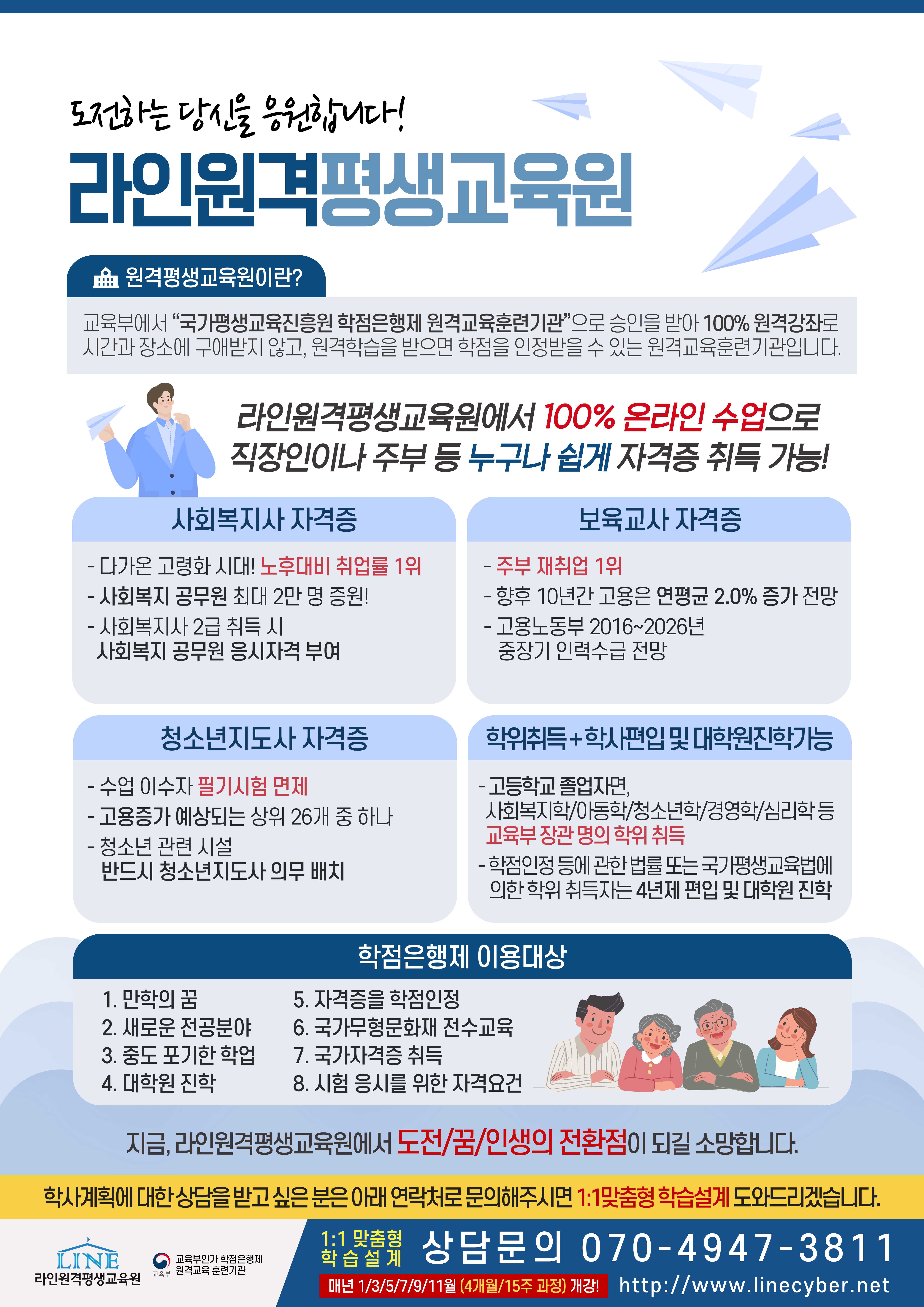 라인원격평생교육원 학습설계팀 직통상담은 ☎010-9019-5528