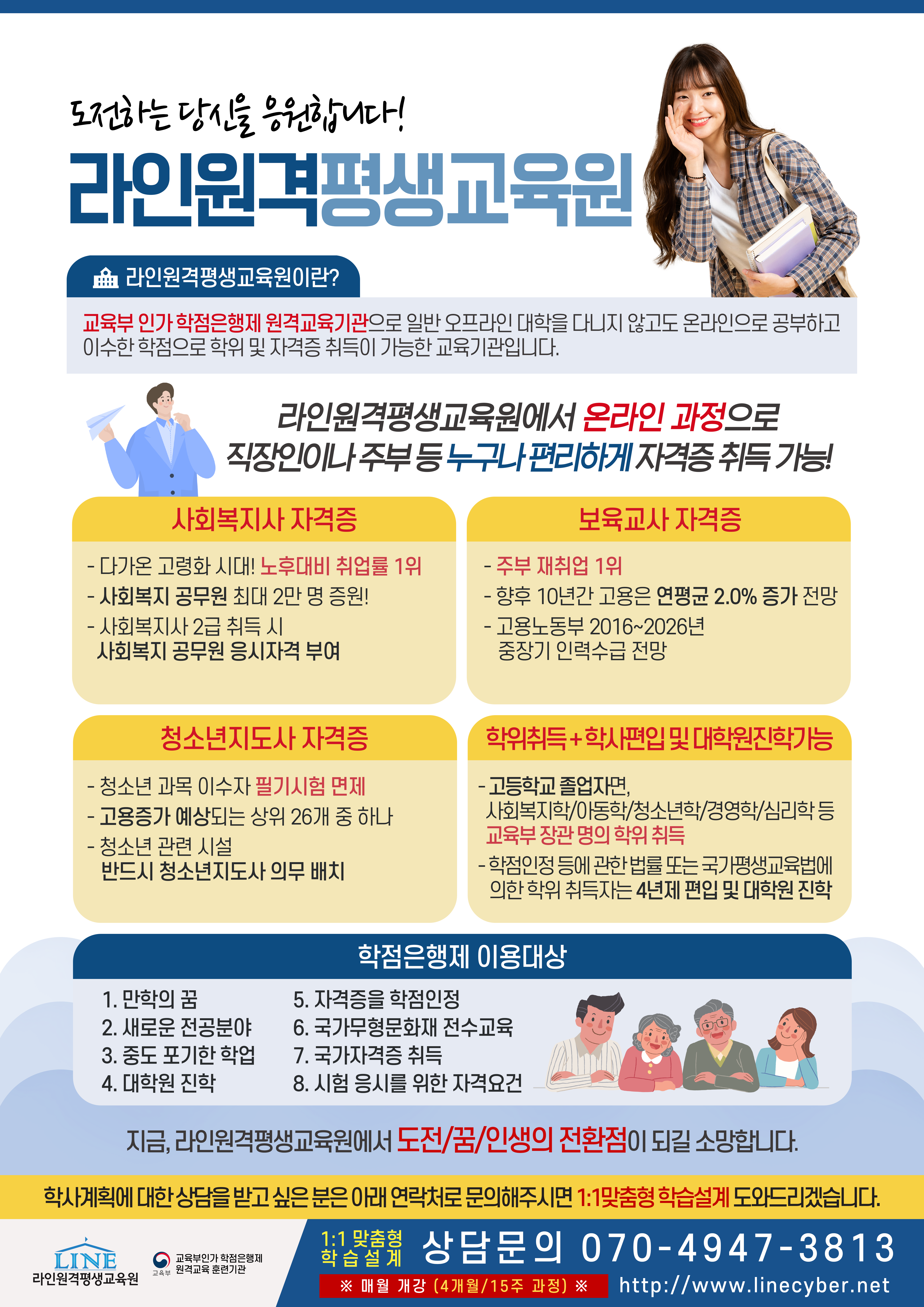 라인원격평생교육원 학습설계팀 직통상담은 ☎010-9019-5528