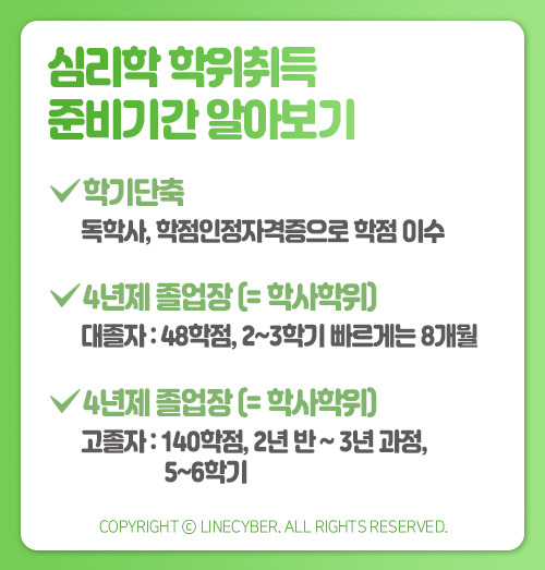 심리학사는 기본적으로 4년제 과정이기 때문에 140학점을 전공, 교양, 일반학점에