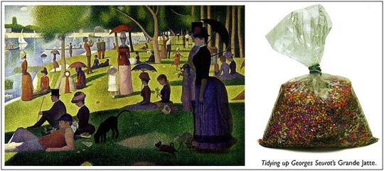 쇠라의 색색깔 점묘는 비닐봉지에 한데 묶여 버렸다.