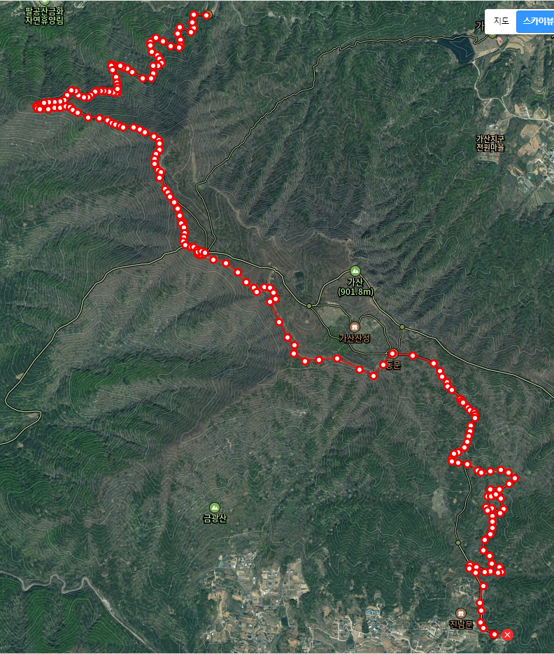 출발지 모래재에서 도착지는 가산산성 진남문