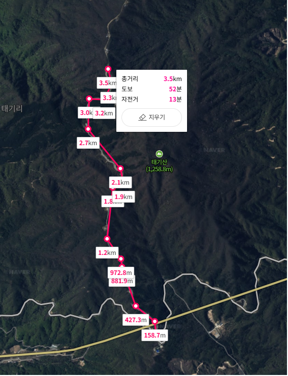 *태기분교터~삼거리 풍력발전소 왕복 약7키로!