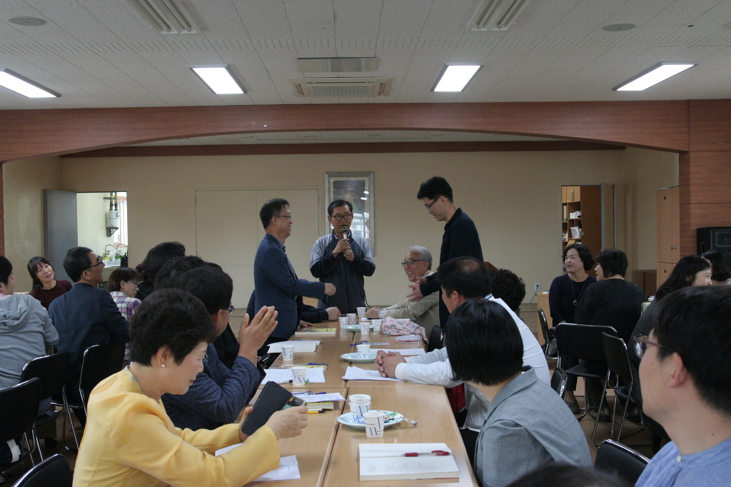 교리수업이 마무리 될 즈음 대부님 대모님과 간단한 인사를 하는 시간을 가진 후에 이번 예비자들 중에서, 추천을 받으신 두 형제님이 가장 과학적이고도 합리적인 가위,바위,보 방식을 통해 회장과 총무직을 맡게 되셨습니다.