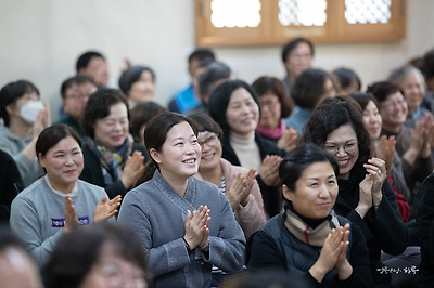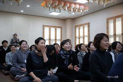“저는 여기 오자마자 보살님이 제일 먼저 질문하실 줄 알았어요.” (모두 웃음)