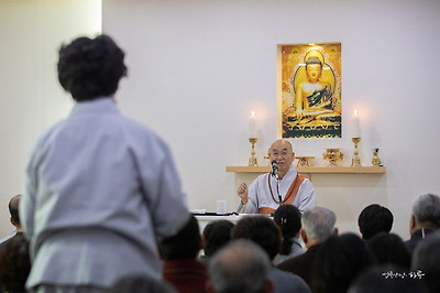 “십여 년 전에 울산 정토사 주지스님께서 저한테 요청을 했습니다. 이름이 비슷한 탓에 약간 혼동이 오니까 정토불교대학의 이름을 바꿔 달라고 그러셨어요. 그런데 정토불교대학이 훨씬 더 오래됐고, 단지 울산에 와서 이런 일이 생겼는데, 이 경우 울산 지역 하나 때문에 전국에 있는 정토불교대학의 이름을 다 바꿀 수는 없잖아요. 그러니 질문자가 좀 마음을 넓게 가져 주세요.