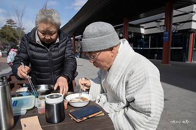 1시에 교육을 마쳤습니다. 바로 포항으로 이동했습니다. 가는 길에 휴게소에 내려 도시락을 먹었습니다. 가는 길이 바쁘기도 했지만, 매서운 바람이 불어 5분 만에 밥을 먹고 다시 차를 탔습니다.