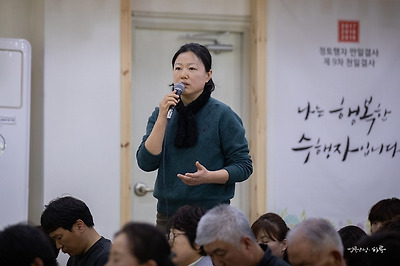 “27년 전에 법륜 스님이 큰 서원을 세우고 시작한 만일결사가 이제 3년이 지나면 끝납니다. 저도 거기에 숟가락을 얹고 싶습니다. 만일결사가 끝날 때 저도 서원행자가 되어서 같이 하고 싶지만, 표면적인 서원행자의 요건인 깨달음의 장, 명상의 장, 나눔의 장, 천일결사 3년 등을 다 채웠는데도 정토회에서는 저를 서원행자로 시켜주지 않습니다. (모두 웃음)