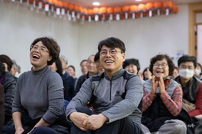 “울산 법당에 몇 년 만에 온 것 같네요. 매년 정초에 지부별로 모임을 하다 보니 주로 해운대법당에서 모였잖아요. 해운대까지 와야 하니 참석인원도 줄었는데 자기 지역에서 모이니까 많이 오셨네요. 오늘은 또 주야가 함께 모일 수 있는 주말이라 지난 일주일 중에 오늘 제일 많이 모인 것 같아요. (모두 박수)