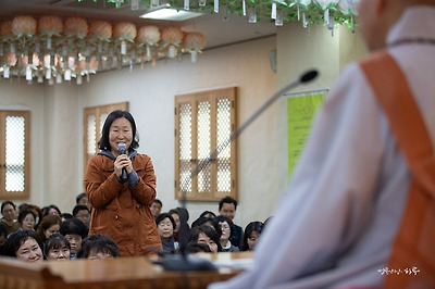 질문자는 웃지 않고 질문하는데 앉아있는 청중들은 자지러졌습니다. 스님도 웃으며 대답했습니다.