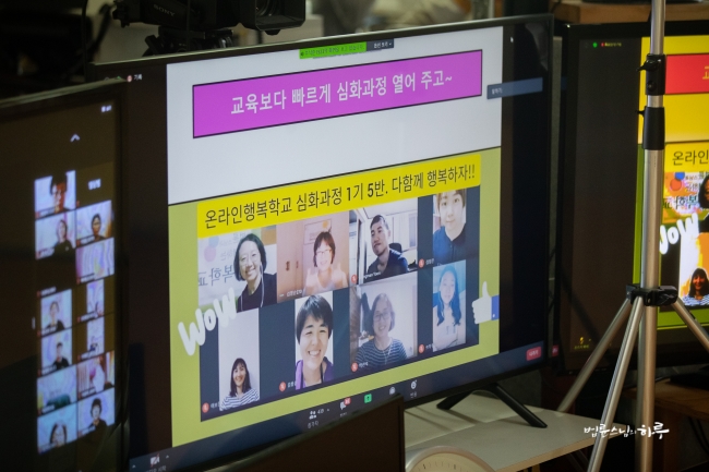 우리는 수행적 관점을 가진 사람들이지만 또한 정신의 힘을 믿는 사람들입니다. 정성을 들이고 공덕을 쌓아야 천지의 기운에 변화가 오고, 소위 기적이라고 말하는 일들이 생길 수 있습니다. 코로나 바이러스로 인해 모두가 힘들어하는 이때일수록 낙담할 게 아니라 우리가 할 수 있는 일에 집중해야 합니다. 요즘 국민들의 가장 큰 어려움이 정신적 우울증이라고 합니다. 이걸 치유하는 일은 우리가 가장 기여할 수 있는 부분이기도 합니다. 게다가 예전에는 행복학교를 하려면 장소도 구해야 하고, 여러 가지 비용도 많이 들었는데, 요즘은 전부 온라인으로 행복학교를 진행하니까 비용이나 장소도 따로 필요하지 않잖아요.