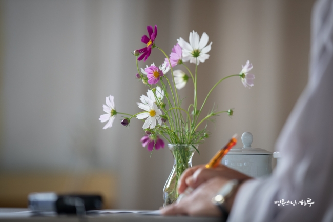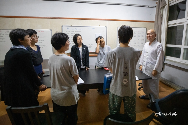 오프라인으로 직접 만나서 서로 부대끼는 시간을 가져야 화도 내면서 지적도 받고 하는데, 온라인으로 공부를 하다 보면 그럴 기회가 없어서 마치 공부가 잘 된 것처럼 느낄 수 있습니다. 그런데 실제로 상황을 마주하면 잘 안 되는 거예요. 현실에서는 자기 습관대로 팍 가버립니다. 그걸 변화시키는 데는 시간이 걸립니다. 오랜 시간에 걸쳐 꾸준히 연습하는 것이 수행입니다. 마침 10-3차 백일기도가 새로 시작되니까 모두 입재해서 매일 아침 정진을 해보시기 바랍니다.”