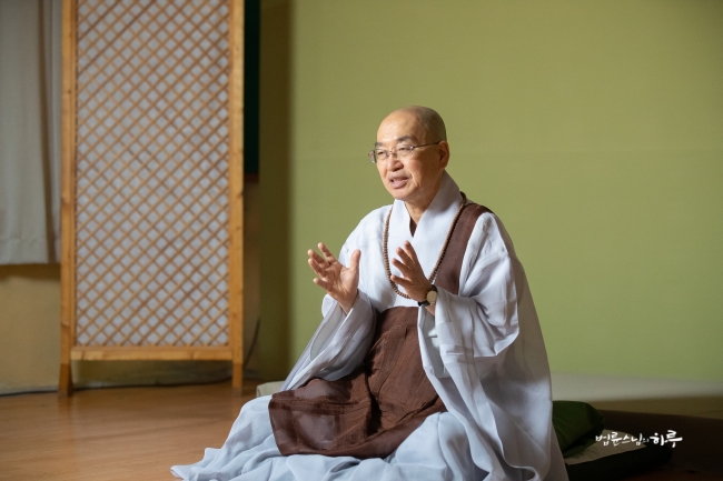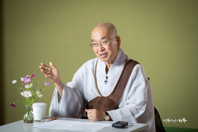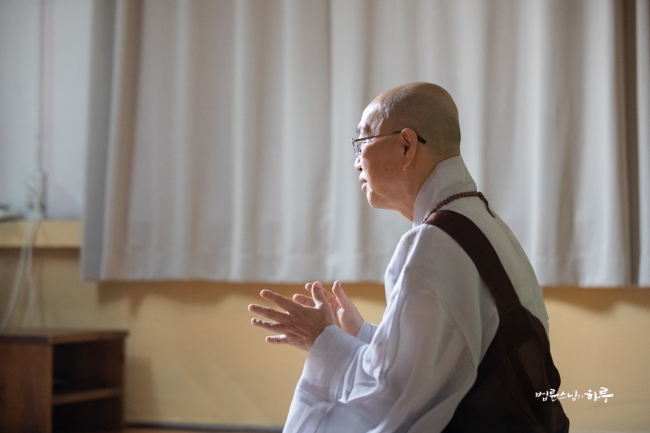 다시 카메라를 향해 돌아앉은 스님은 쌀쌀해진 가을 날씨에 대해 이야기하며 말문을 열었습니다.