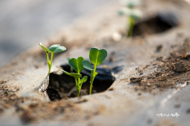 4동은 언제 옥수수가 있었냐는 듯 텅 비었습니다. 땅 가까이에서는 작은 무 싹들이 앞 다투어 고개를 내밀고 있었습니다.