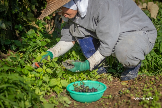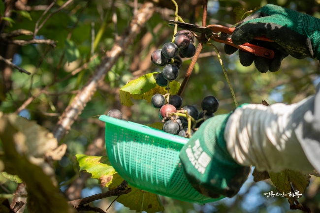 스님은 줄기에 달린 포도를 따고 바닥에 떨어진 포도 알 하나하나까지 다 모았습니다. 작은 바구니 하나가 가득 찼습니다.