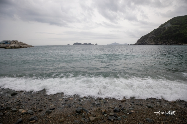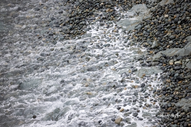 몽돌 사이로 파도가 밀려나가며 돌이 구르는 경쾌한 소리가 들려왔습니다.