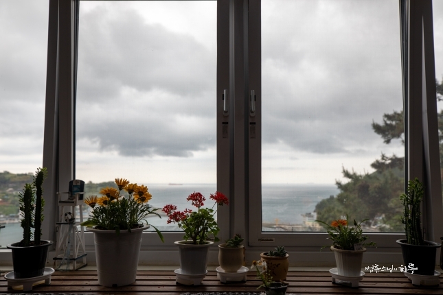 장승포항이 훤히 내려다보이는 윈드밀테라스에서 송우정 이사님이 맞이해주셨습니다.