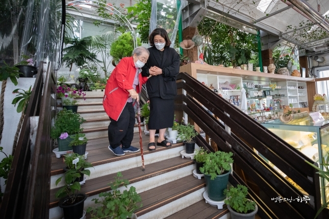 한국전쟁 전, 개성에서 교편을 잡고 있던 김임순 님은 전쟁통에 돌이 된 딸을 안고 거제 장승포까지 피난을 왔습니다. 남편과 함께 미국 유학을 꿈꾸던 김임순 님은 전쟁을 겪은 후 1952년, 전쟁고아들을 돌보기 위해 애광영아원을 설립했습니다. 이후 1978년, 애광영아원은 지적장애인 거주시설 애광원으로 전환했고 69주년을 맞이했습니다. 전쟁고아들을 돌보던 20대 원장님은 백발이 성성한 98세가 되셨습니다.