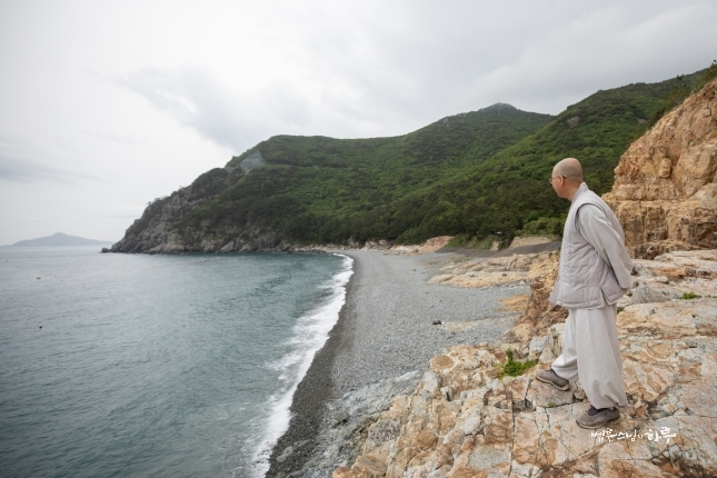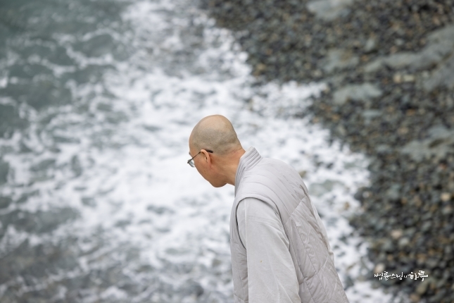 스님은 바다에서 나는 소리에 귀를 기울였습니다.