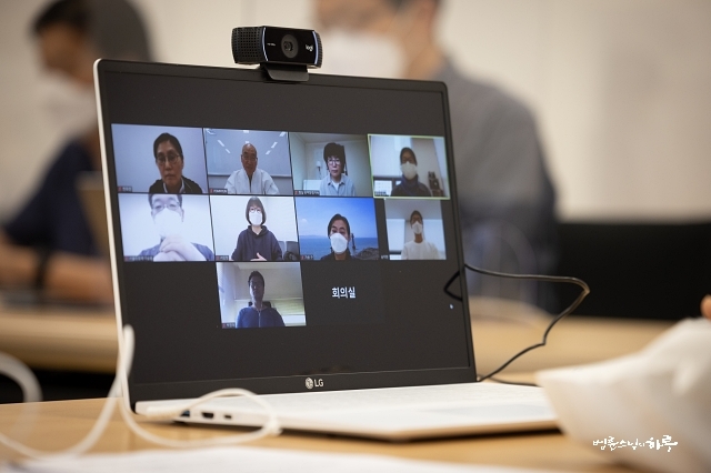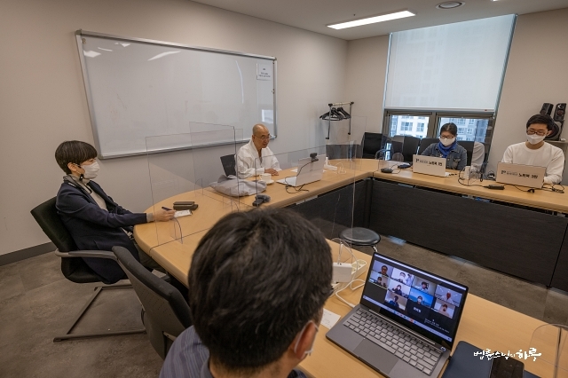 오후 2시에는 손님이 찾아와서 대화를 나눈 후 다시 평화재단으로 이동했습니다. 평화재단 회의실에는 평화재단 활동가들이 한 달 만에 서울에 올라온 스님과 회의를 하기 위해 기다리고 있었습니다. 공동체에 살지 않고 출퇴근하는 활동가는 온라인으로 회의에 참석했습니다. 오후 3시 30분에 회의를 시작했습니다.