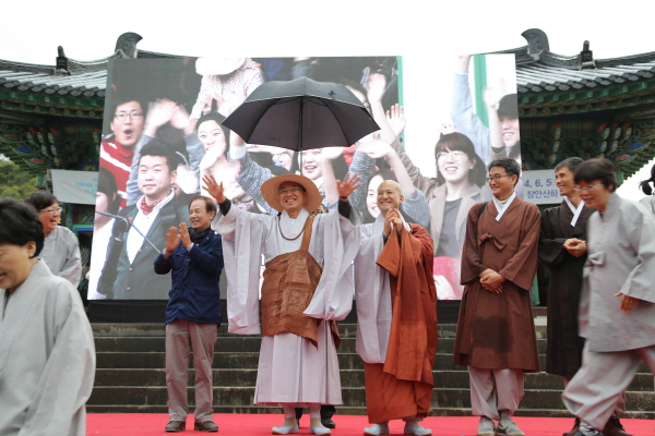 봉사하는 삶을 다짐한 대중들에게 감사한 마음을 전하기 위해 대중들이 죽림정사를 다 빠져나갈 때까지 무대 위에서 계속 손을 흔들어 주셨습니다.