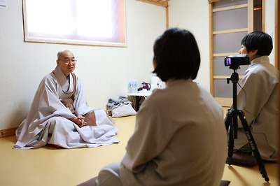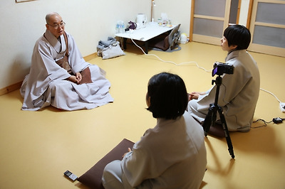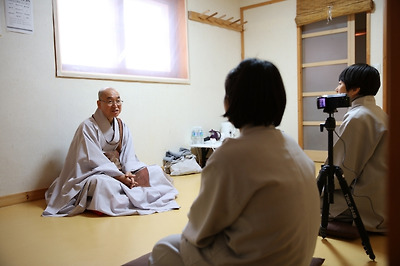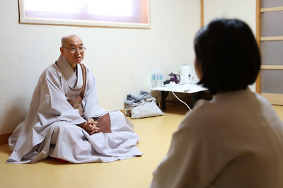 두 분은 졸업 수련 프로그램의 일환으로 지난 일주일 동안 스님과 동행을 하며 스님 가까이에서 일상 속에서의 수행을 배우는 시간을 가졌는데요. 먼저 스님이 일주일 동안 같이 다녀보니 어땠는지 소감을 물었습니다. 그러자 행자님은 “법문에서 하시는 말씀 그대로 소박하게 사시는 모습을 보니 금강경 제1분에 나오는 부처님의 일상이 떠올랐다”고 얘기했습니다. 그러면서 “공의 도리를 깨우쳐주기 위해 같은 원리를 지치지 않고 수없이 반복하는 모습을 가까이에서 본 것이 가슴에 많이 남는다”고 했습니다.
