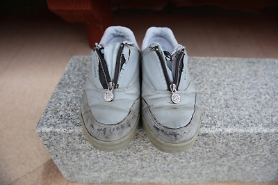 ▲ 스님의 낡고 해어진 신발. 밑창이 떨어진 것을 스님은 본드로 다시 붙여서 신고 있습니다. 행자님은 이런 검소한 삶에서 많은 것을 배웠다고 합니다.