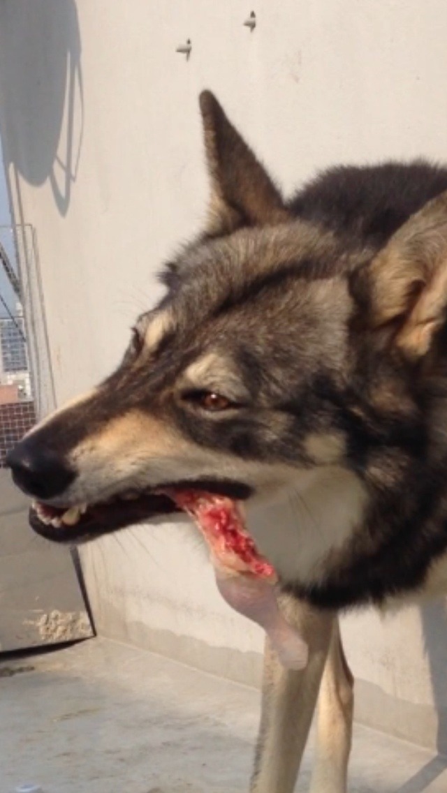 안녕하세요 일단 제가 기르는 녀석 소개부터 하겠습니다 러시아 울프로 몽골늑대와는 다른종 이구요 현재 생후 일년 정도의 아직자라나는 청소년 늑대입니다 하루에 1200g짜리 닭 두마리씩 먹는 녀석이구요 늑대 특유의 멘샤이 기질 잡느라 사개월 부터 고생좀 했지만 현재는 괜찮네요^^ 개와 다른점 몇가지 들자면 이빨과 눈 머즐 두상 꼬리 모질 등이 잇구요 실제로보면 더욱 차이가 납니다 가끔 특식으로는 토끼나 고라니 등을줍니다
