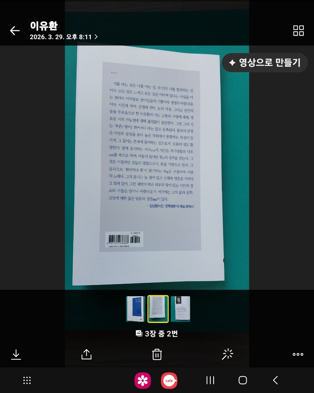 이유환 시인님의 푸른 밤이 휘어지다 시집 출간 작성자전기웅|작성시간26.03.29|조회수52 목록 댓글 1 글자크기 작게가 글자크기 크게가 이유환 선생님 시집 출간을 진심으로 축하드립니다 https://m.imaeil.com/page/view/2026032614242785321https://m.imaeil.com/page/view/2026032614242785321 다음검색 현재 게시글 추가 기능 열기 북마크 공유하기 신고 센터로 신고 댓글 댓글 1 댓글쓰기 답글쓰기 댓글 리스트 작성자신노우(南園) | 작성시간 26.03.30 이유환 작가님,시집 '푸른 밤이 휘어지다' 출간을 축하합니다.^^ 댓글 전체보기