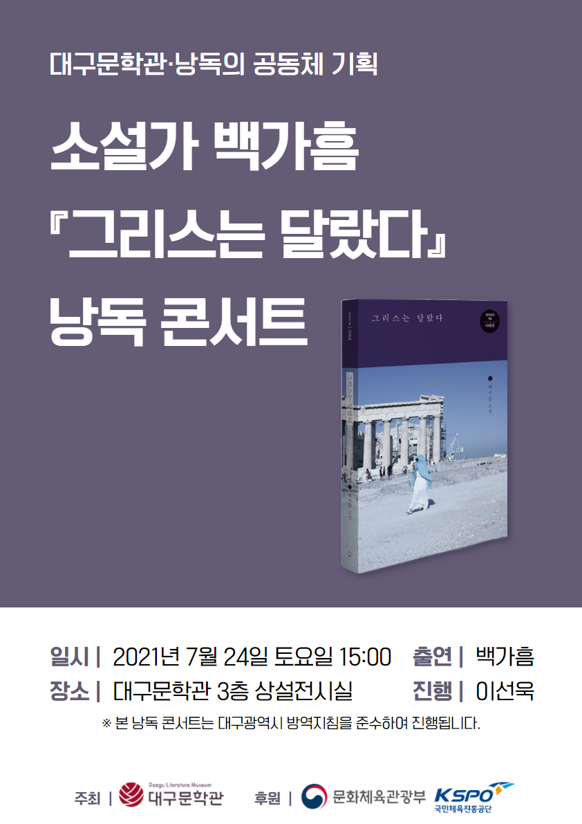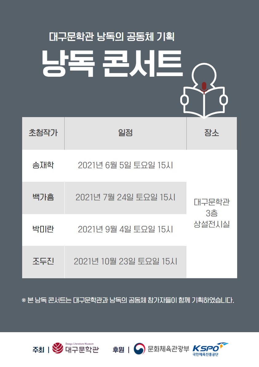 ※ 낭독 콘서트는 대구시의 방역 지침을 준수하여 진행되며,