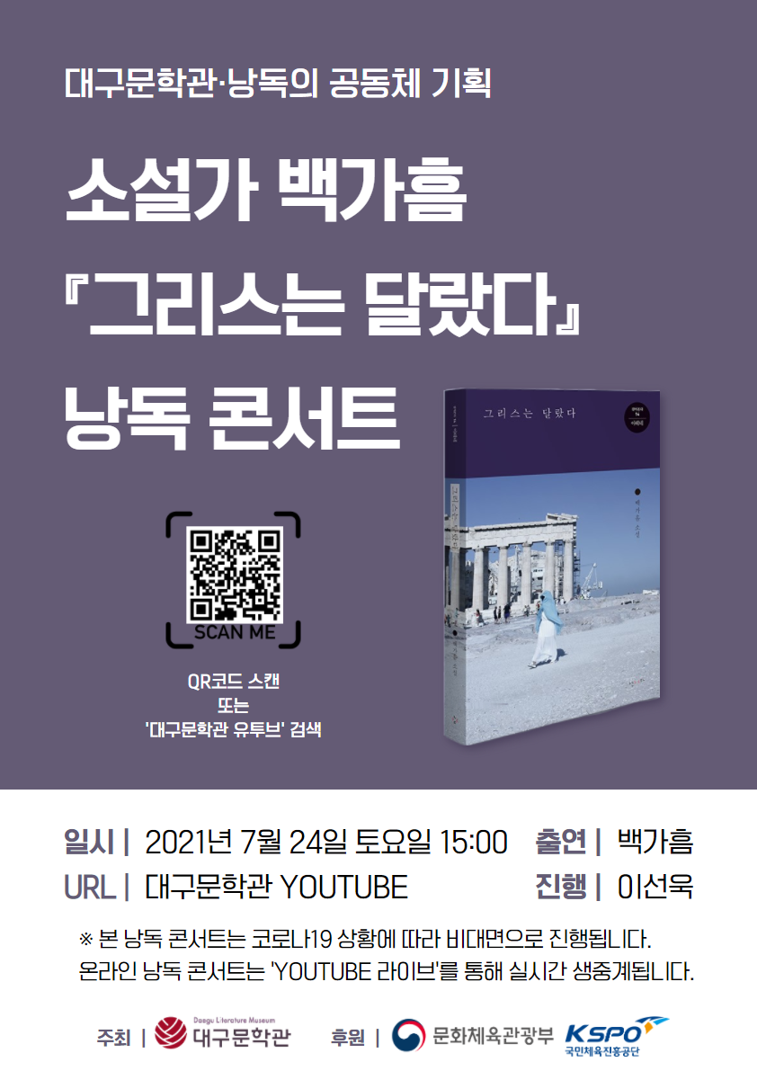 7월 24일 토요일 오후 3시, 대구문학관 유튜브 라이브로 만나요:)
