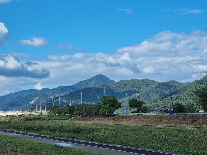 시인의 고향마을 앞으로 흐르는 흰내 둑을 따라 걸으면 북쪽에 방올음산이 뚜렷하게 보인다.