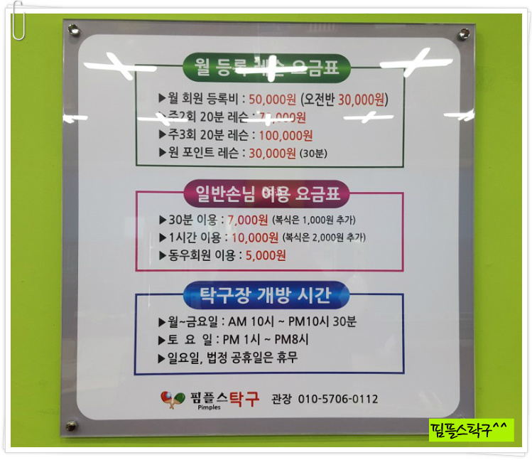 ⊙ 핌플스탁구 / 관장:박준수 / 대구광역시 달성군 옥포면 교항리2902(6층) / 010-5706-0112⊙