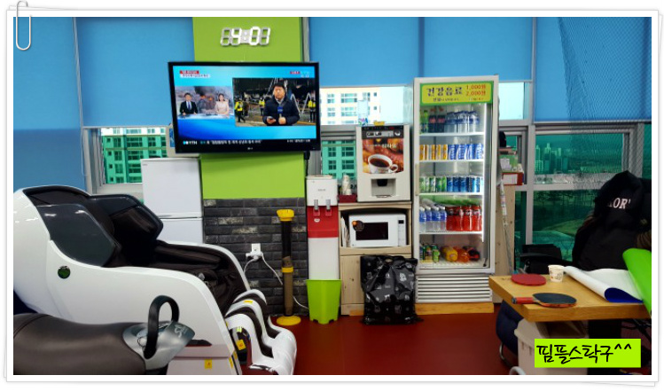 - 쿠션좋은 렉스코트바닥에 직사각형 모양의 탁구장, 특히 휴게실에 설치된 안마기가 아주 인상적이였습니다.